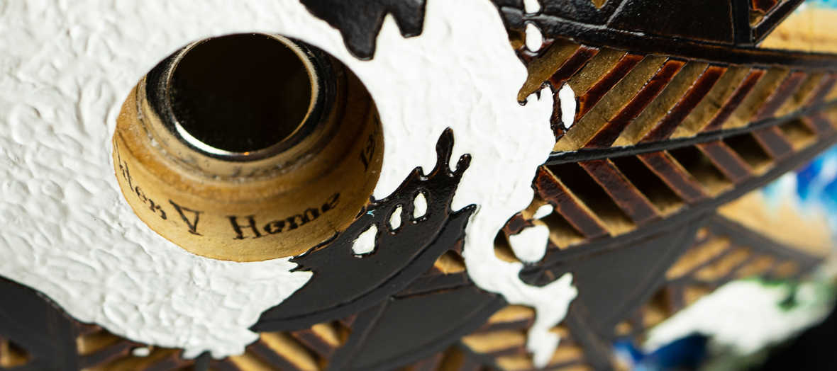 The first, “Relic” collection, I wanted to focus on the beginning the story I will tell therefore, the designs while complex are simple and elegant. I also wanted to include a “globe” so I designed “Home” which I spent months painting with a toothpick in order to get the texture wanted to show the major warm and cool ocean currents and, texture to the land on the continents.
