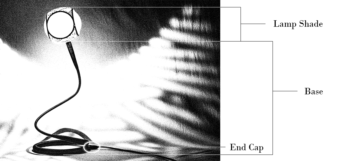 Each lamp consists of a lamp shade, a base and an end cap. How is the creation of the base and end cap influenced by the lamp shade?