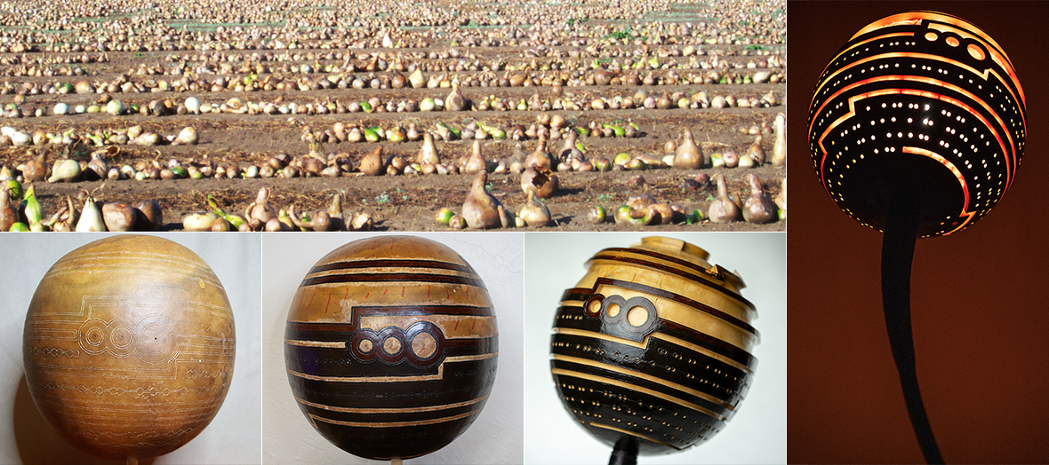 For thousands of years gourds have been used for musical instruments, carrying water, eating, and in more recent history carved for lighting. Typically, gourds are for the casual hobbyist spending a few hours cutting and carving a small thin-skinned gourd to place over a candle, or small Christmas style lights or even a light bulb you’d find in most homes.